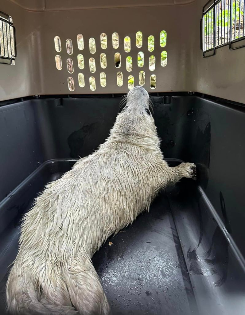 With Jersey wildlife hospital closed for refurbishment, the RSPCA was asked to accommodate ‘Fliquet‘ (as the seal had now been named) at a UK mainland rehabilitation facility. The RSPCA willingly agreed to treat the seal at its Mallydams Wood Centre in Kent, but how do you transfer a seal pup from a Jersey beach to a treatment centre in the South of England without causing the mammal undue distress?