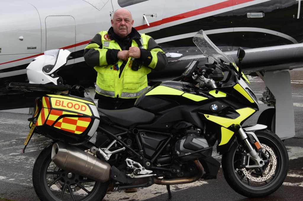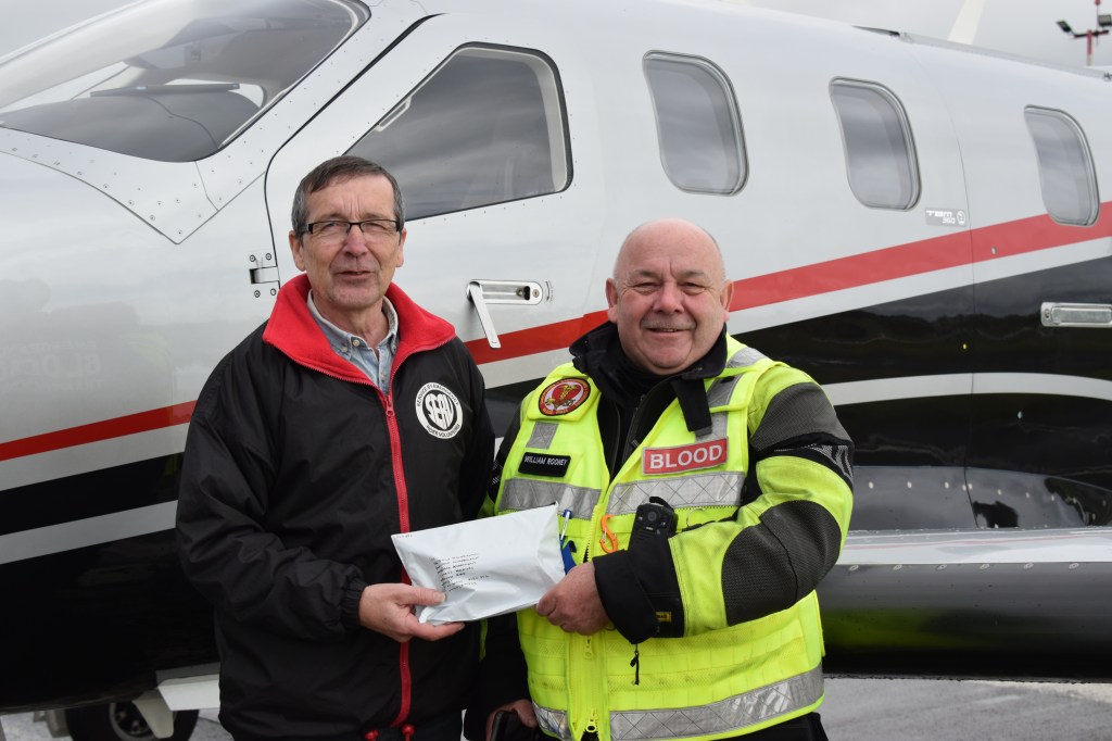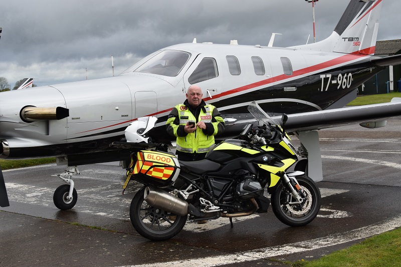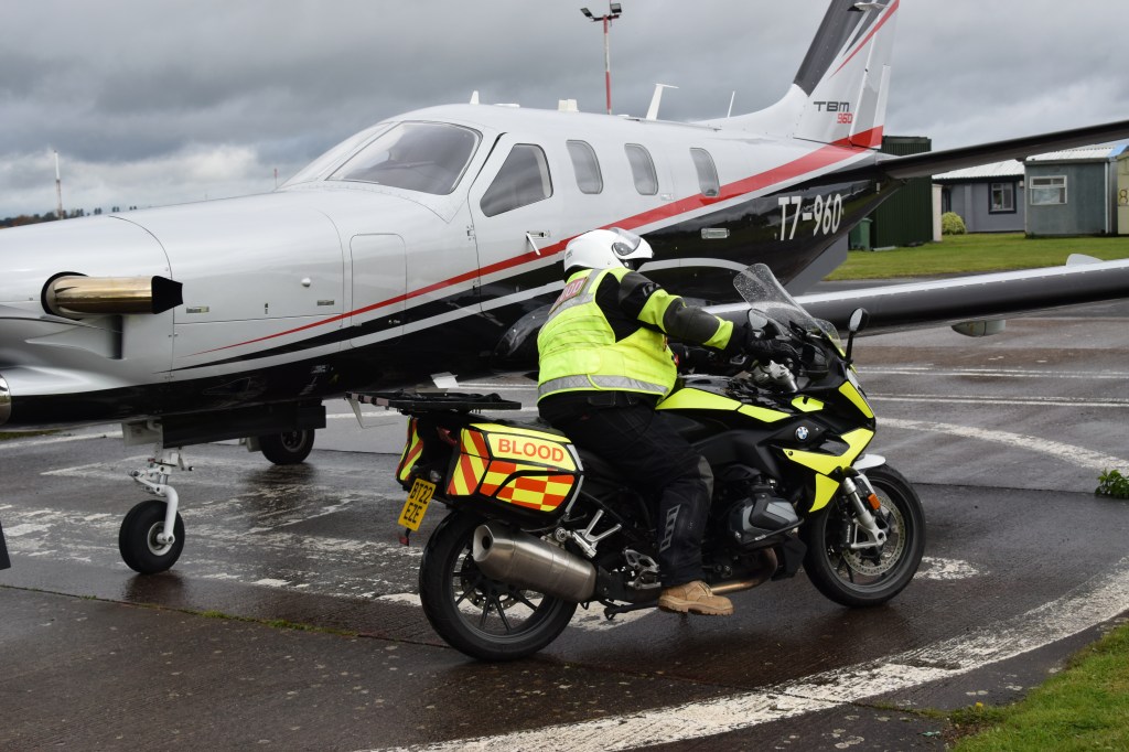 With Tim Bennett on board as observer, the aircraft was repositioned to Wolverhampton Halfpenny Green on Friday morning after a 37-minute flight from Lee on Solent. The critical sample was handed over by Blood Bikes rider Bill Rooney and the emergency flight departed immediately for Bembridge airport on the Isle of Wight.