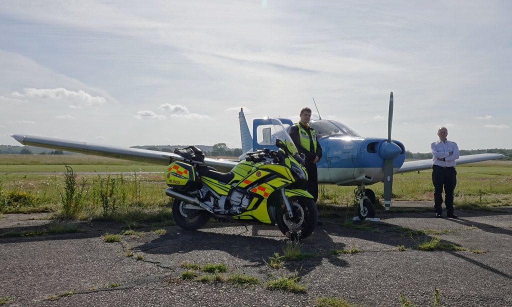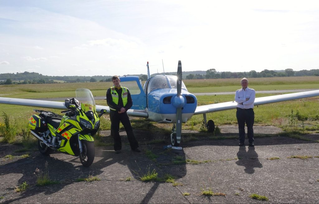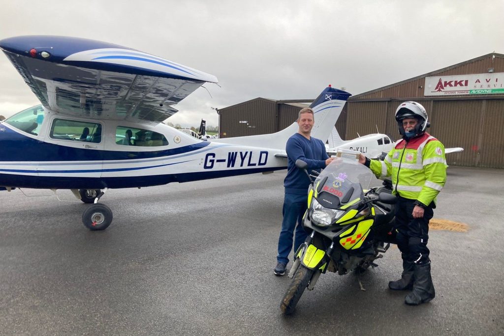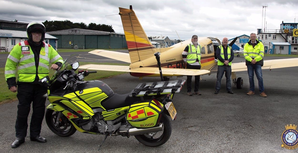 The following images showcase other CAS aircraft and pilots working closely with our Blood Bikes partners, all of whom have volunteered their machines and their time (at their own expense) to transport urgent medical samples between UK destinations. CAS and the NABB have proved many times over that the value of combining wheels and wings is greater than the sum of the parts!