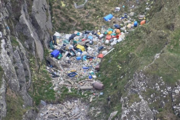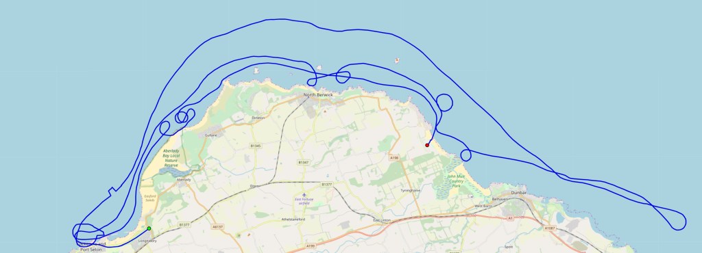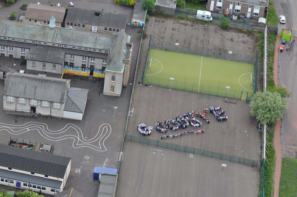 Ian Forrest has also shared these photographs from a Scottish Parliament Plastics survey flight to gather evidence of plastic pollution around Scotland’s shorelines. It’s not always about bad news though; Ian’s final photograph shows pupils and staff on the last day of a local school which was closing down prior to moving to a new campus. Like many CAS pilots, Ian has a ‘day job’ as well and had done a few days supply teaching there, so he volunteered to photograph them from the air for a fundraising memorial photo of the event! Also illustrated here is the track from a search for a lobster pot entangled whale with its youngster, spotted in the Forth estuary.