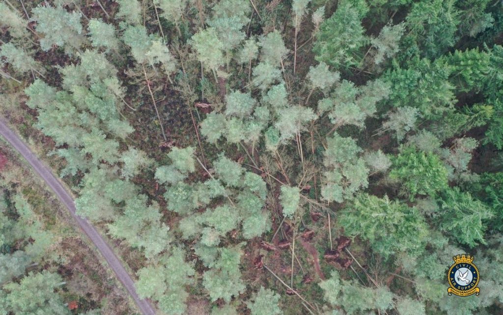 These images captured in the Winter of 2021 are from a flight recording storm damage to a community-owned woodland in Scotland. This gave the charity who manages the area everything they needed to understand the extent of damage incurred and put forward their proposed remedial/recovery actions to Scottish Forestry with a clear overview of the challenge. See related news article.